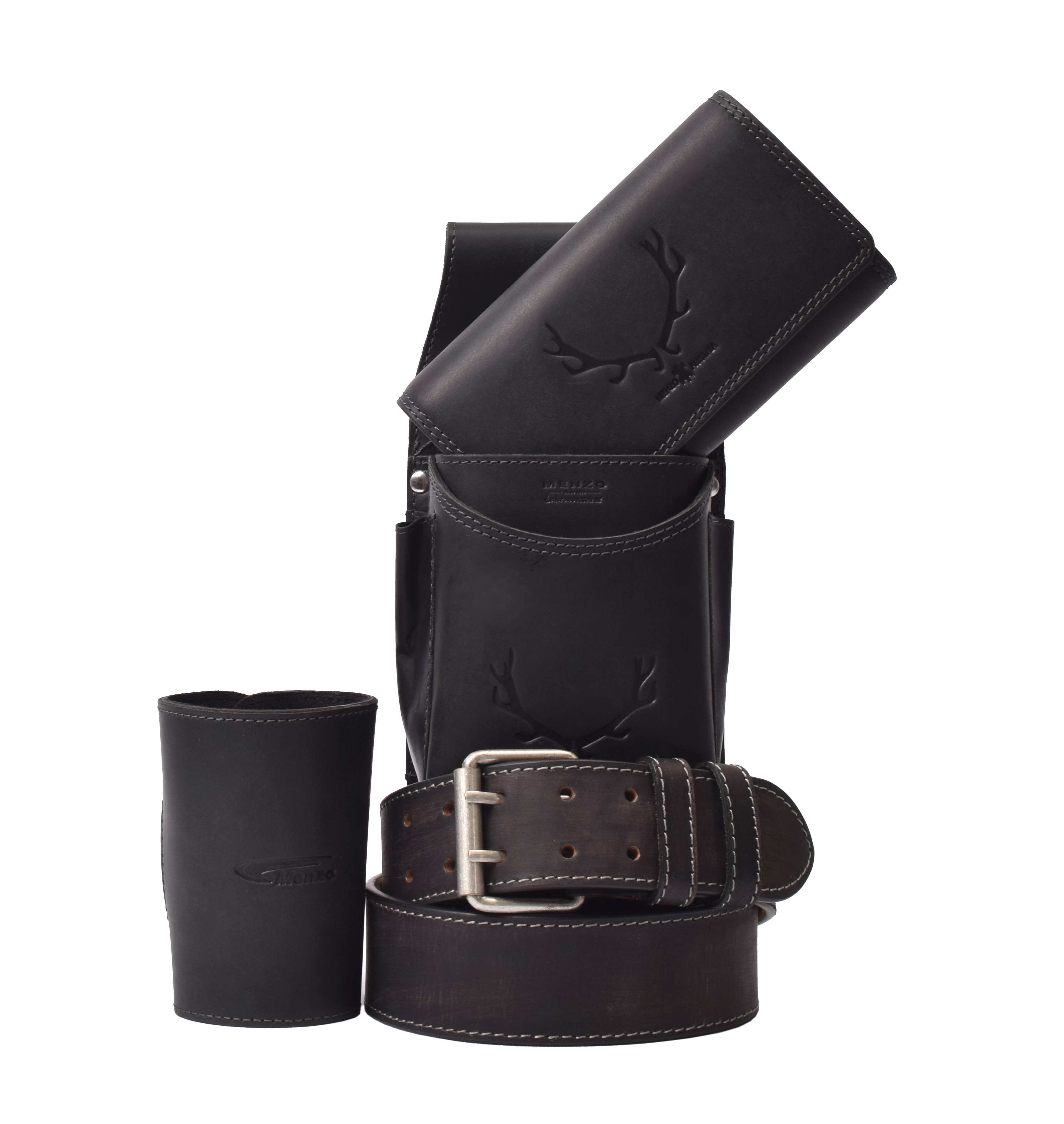 Menzo-Kellnerbörsenset - 3-teilig - schwarz-geweih (Kellnerbörsenset + Getränkehalter + Gürtel)