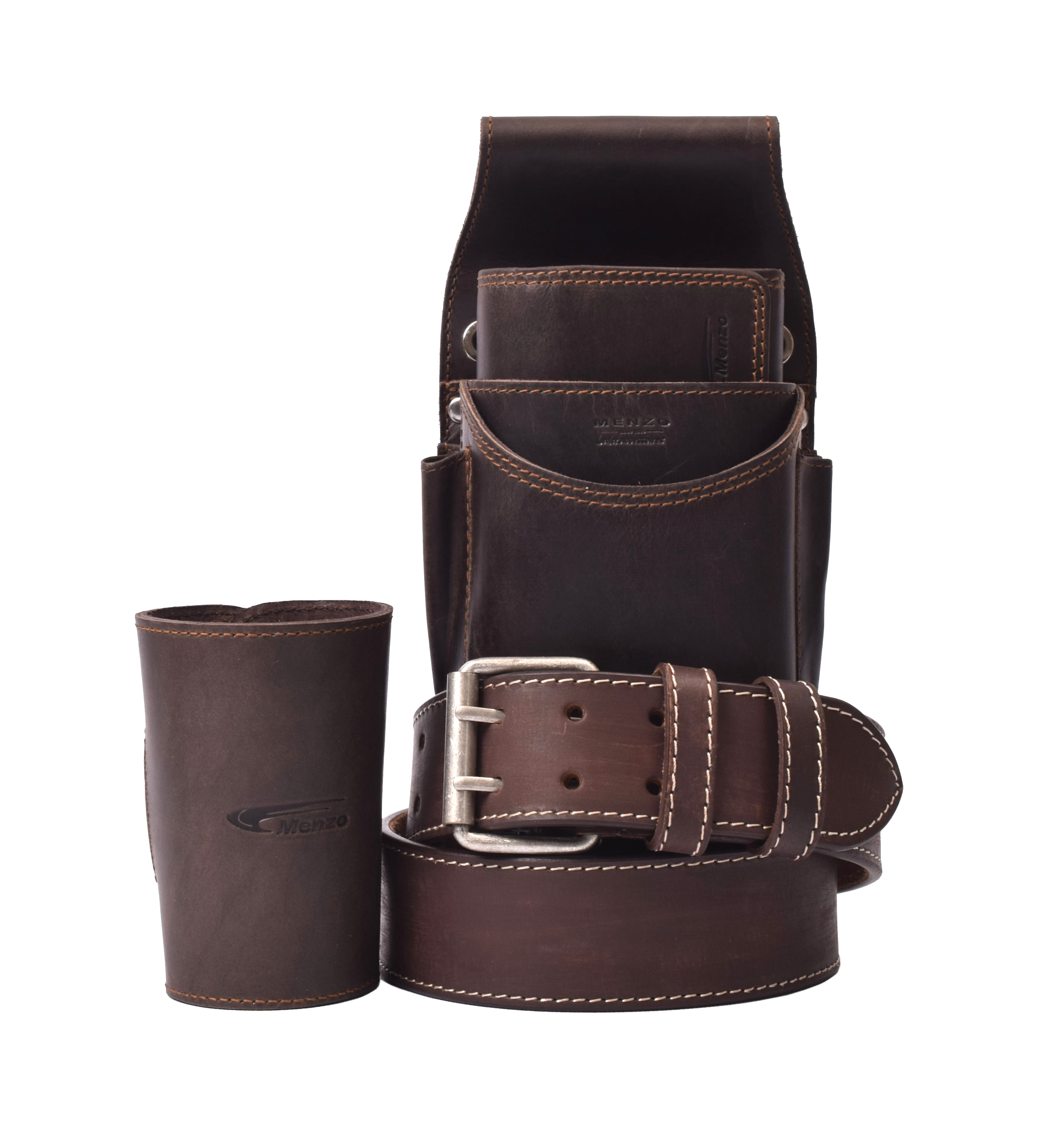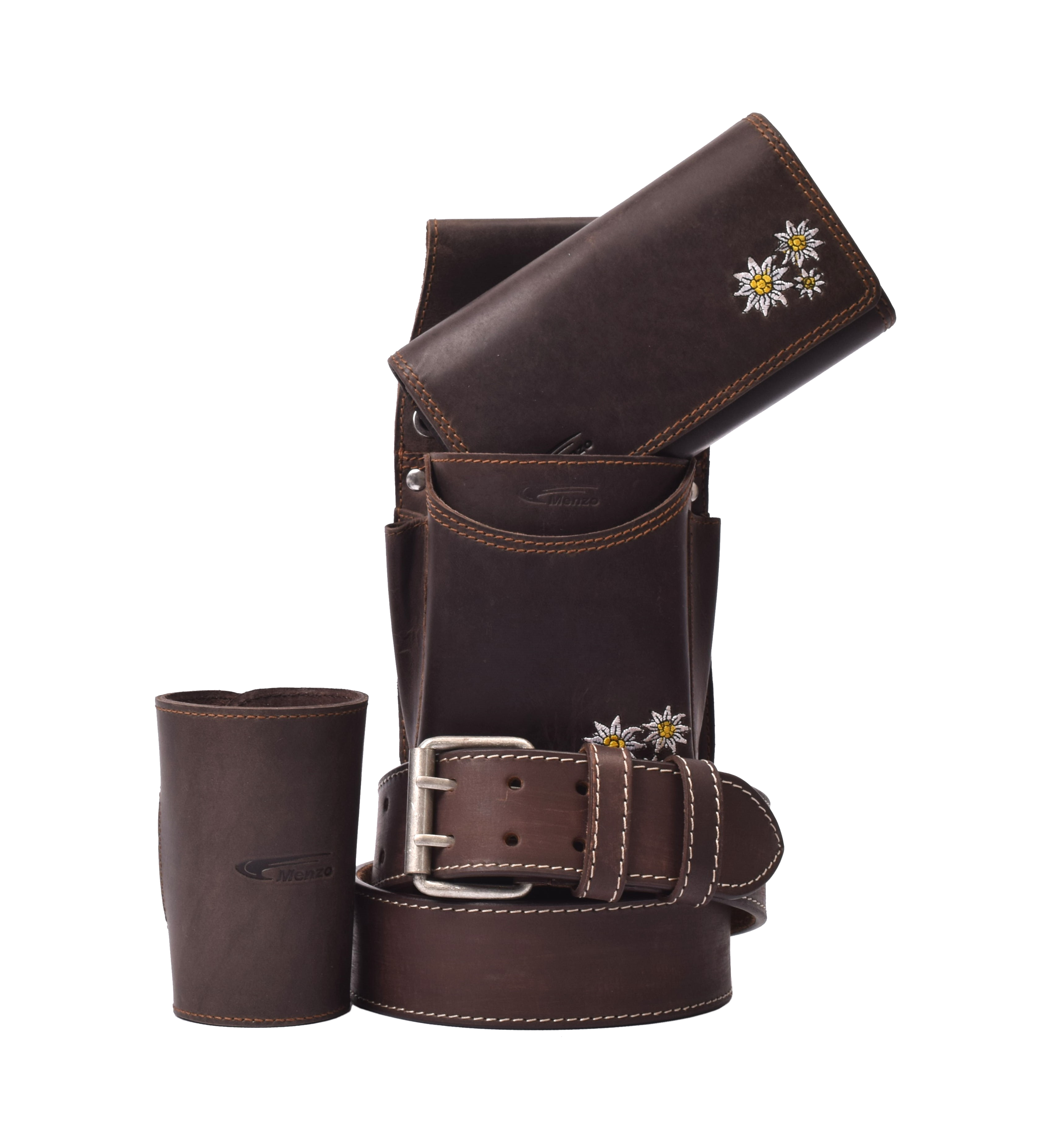 Menzo-Kellnerbörsenset - 3-teilig - marone-edelweiss (Kellnerbörsenset + Getränkehalter + Gürtel)