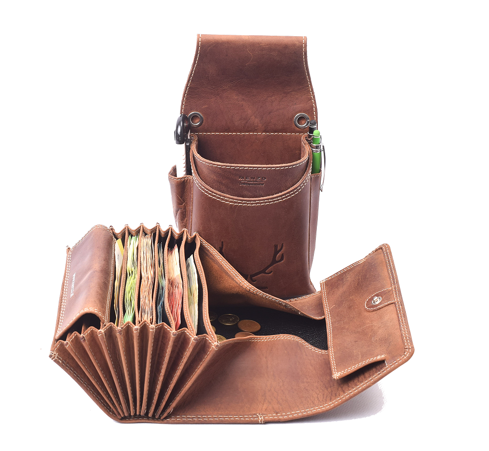 Hochwertiges Menzo 937 Profikellnerset Büffelleder Doppelnaht/Edelweiss marone